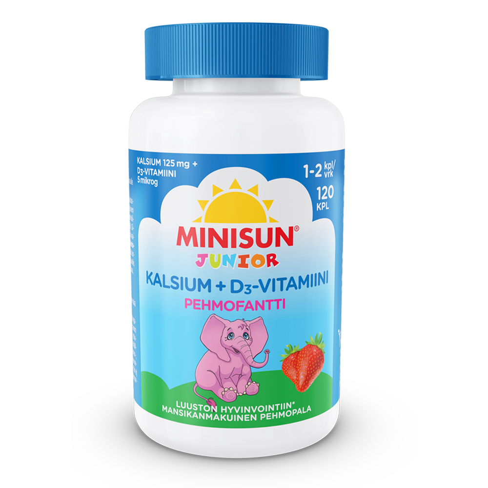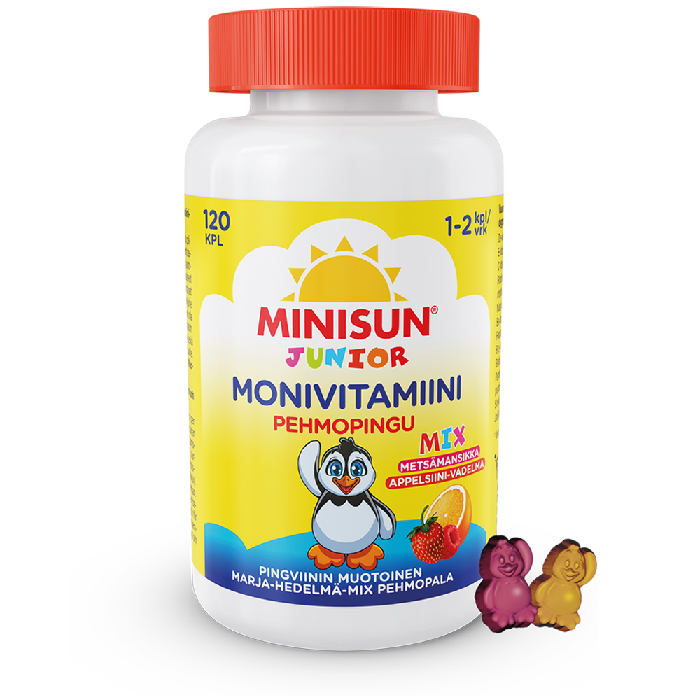 Minisun Junior-tuotteet ovat hauska ja helppo tapa varmistaa lasten riittävä vitamiinin saanti. Suomalaisille lapsille suunnitelluista tuotteista löydät hauskan muotoiset ja jokaiseen makuun sopivat vaihtoehdot.