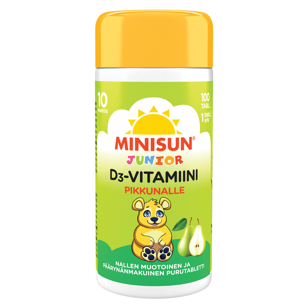 Minisun Junior D-vitamiini Päärynä 100 tabl.